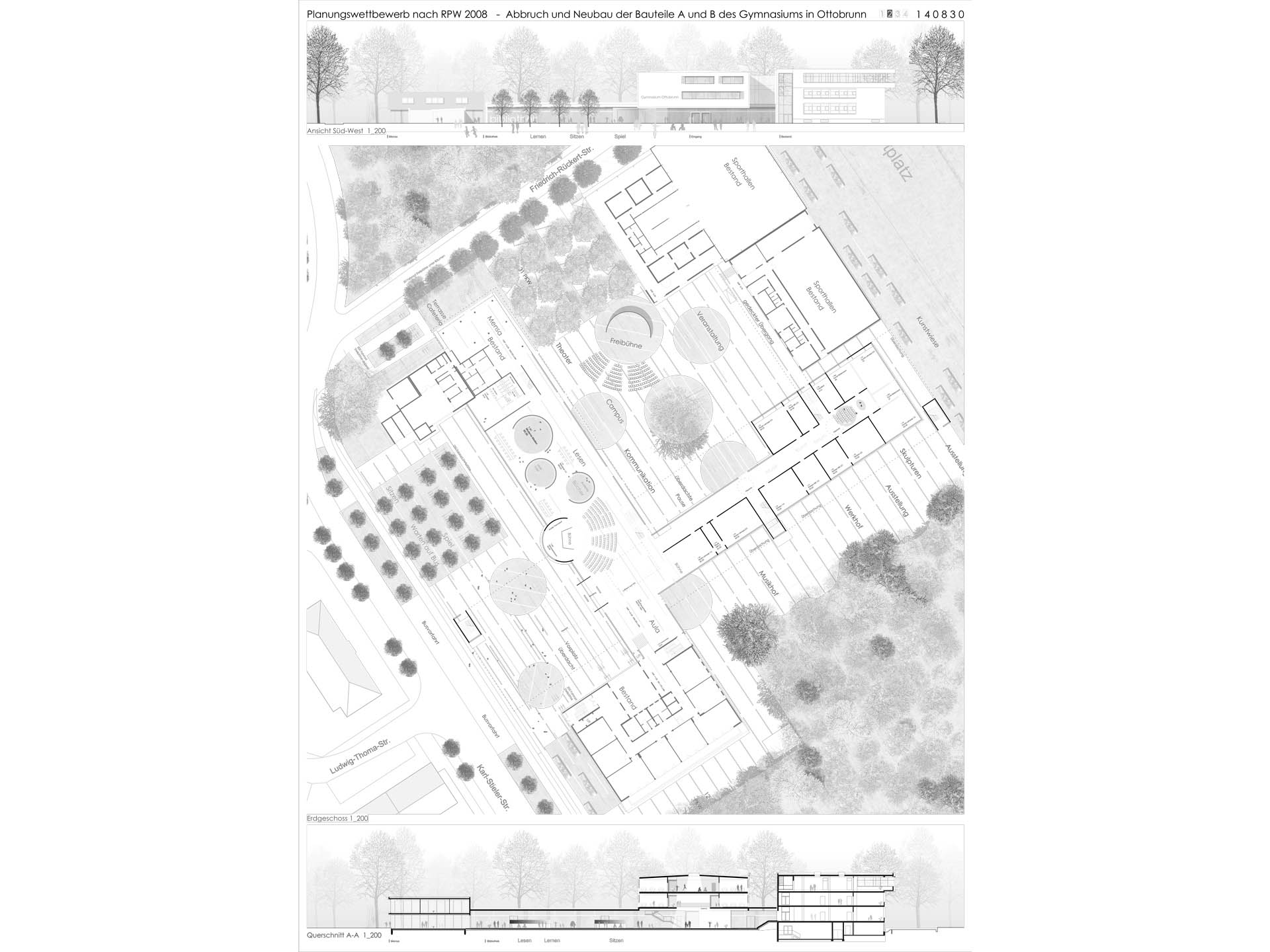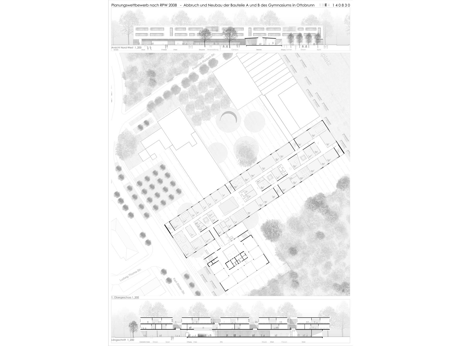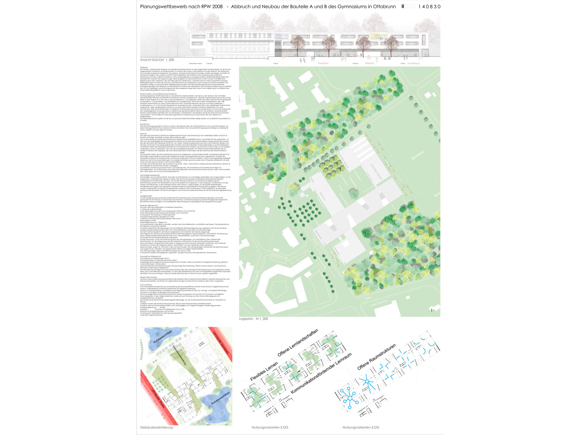 Die Anbindung des Mensabauteils und der bestehenden Sporthallen (auch einer möglichen Dreifachsporthalle) ist ebenfalls gut gelöst. Im erdgeschoßigen Aulabereich erfordern die vorgeschlagenen funktional-räumlichen Lösungsansätze jedoch eine vertiefende Weiterentwicklung.